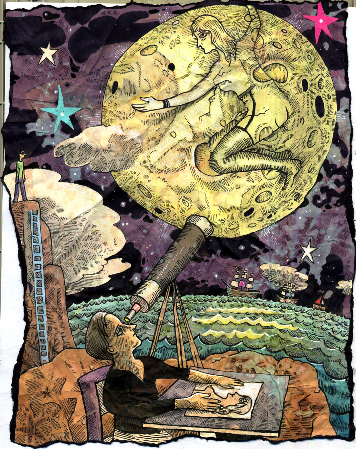 When I'm at my best, my pictures skate along a crumbly edge between autobiography and the fantastic. I try to gently examine those places where the pleasure and burden of the body intersect with the lightness of dreams and nightmares.