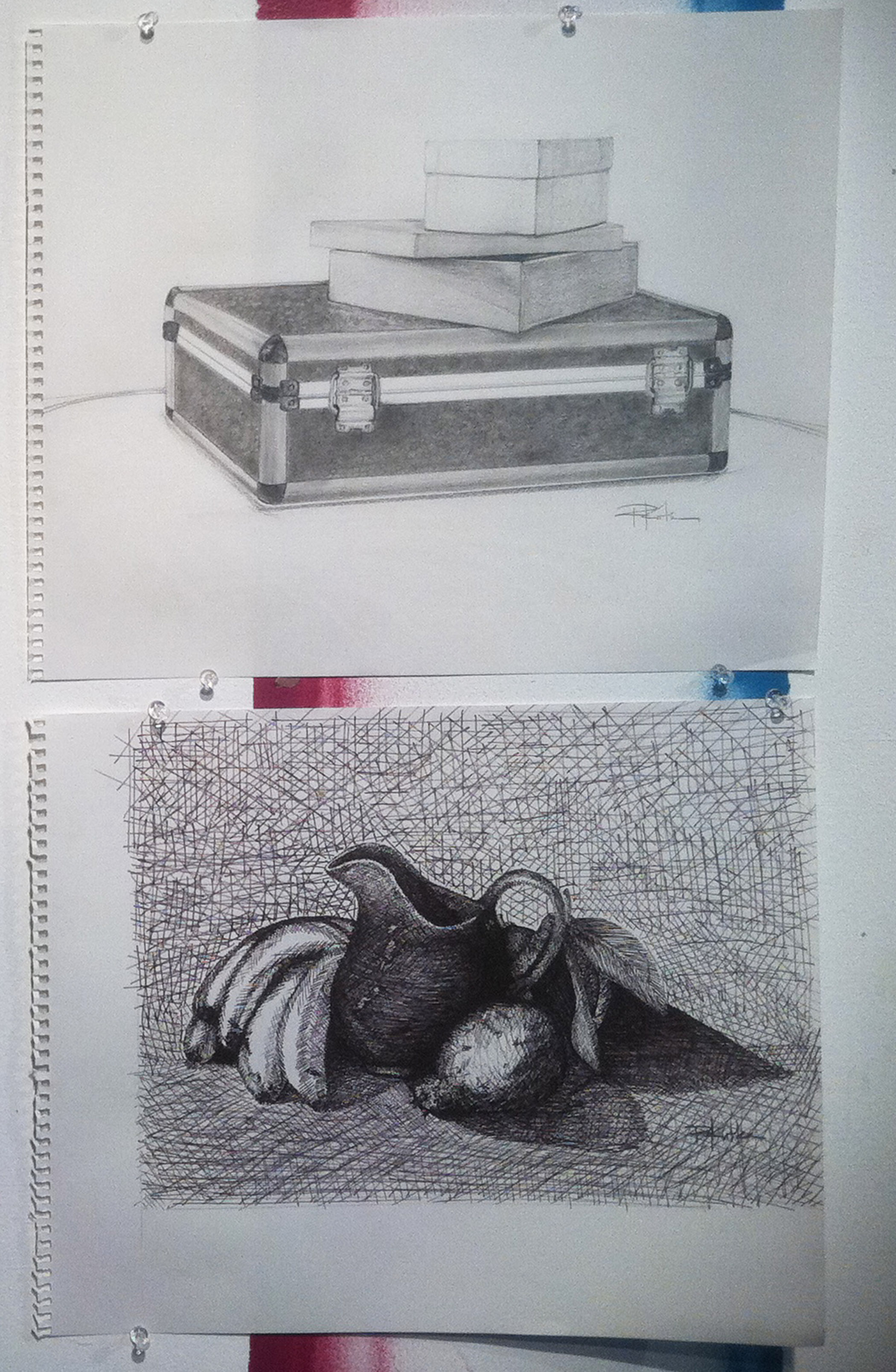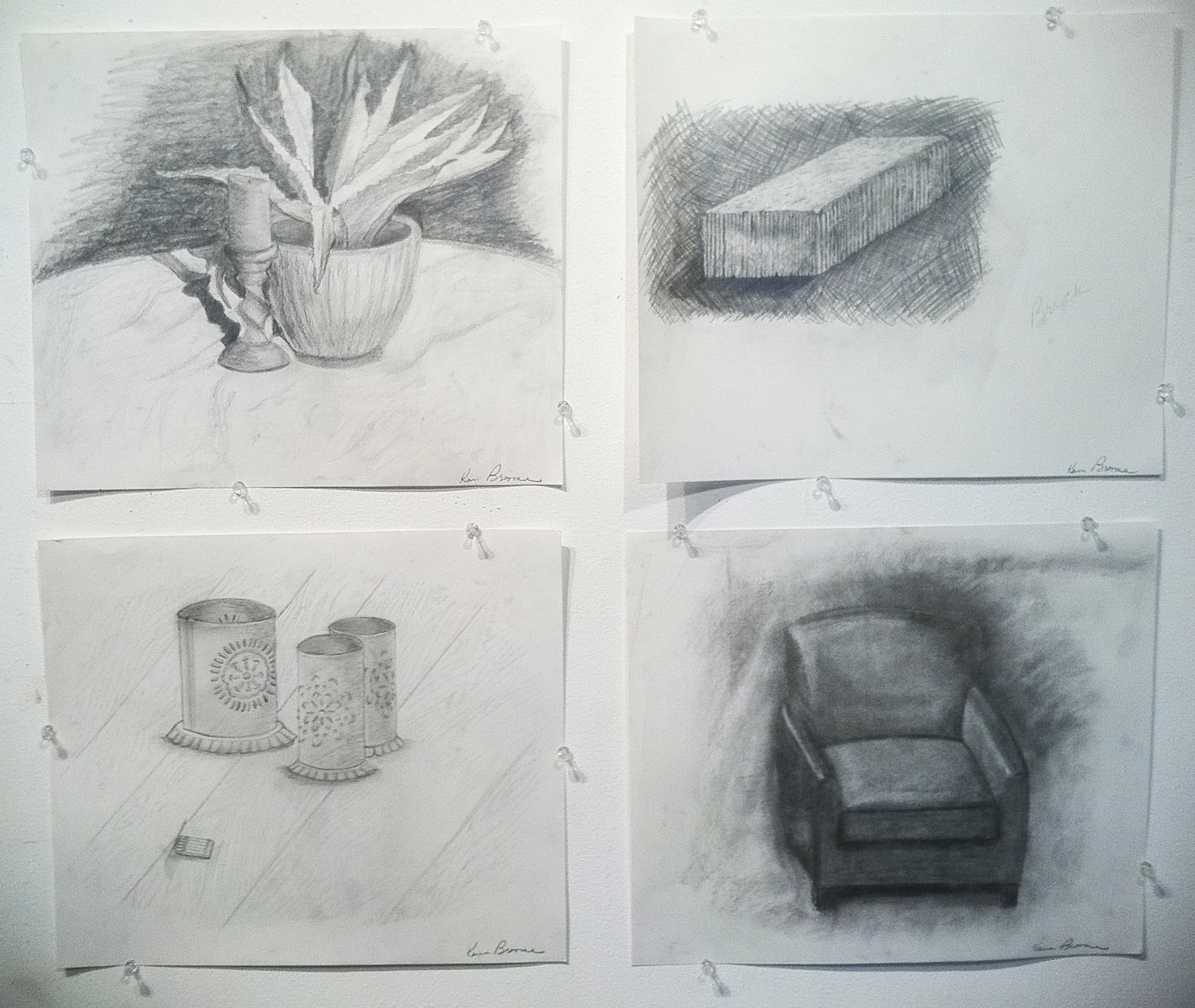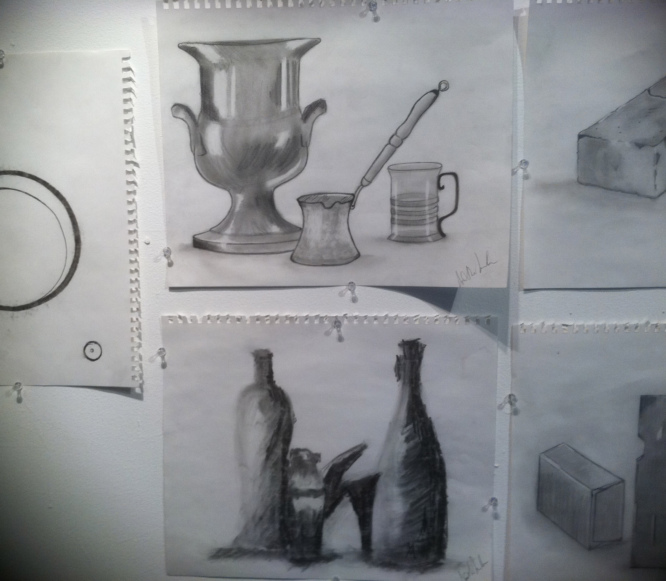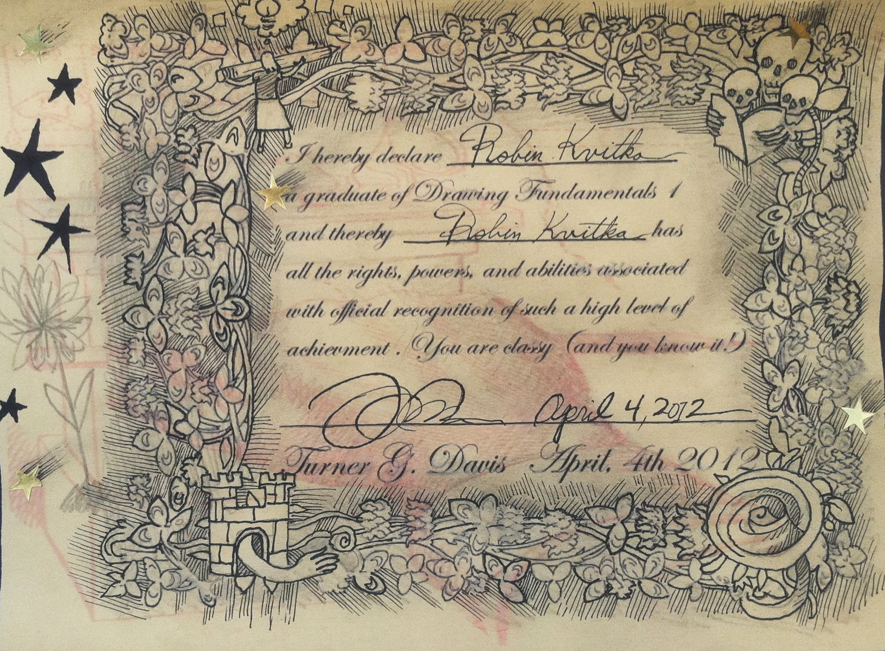 Drawing Fundamentals 1 in the classroom plus below are examples of handmade diplomas and student artwork
